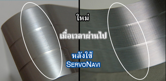 ยกตัวอย่าง เช่น ตอนที่ตัดพื้นผิวโค้ง จะเกิดรอยจากวัสดุเหลือเมื่อแรงเสียดทานมากเกินไป และเกิดรอยแหว่งจากการตัดวัสดุออกมากเกินไปเมื่อแรงเสียดทานน้อย ในบางครั้งทั้งคู่จะปรากฏผลเป็นรอยเวลากลับทิศทางแกน ฟังก์ขั่นปรับรอยนูนเวลาเปลี่ยนทิศทางโดยอัตโนมัติของ SERVONAVI จะรักษาความแม่นยำของการขึ้นรูปโดยเปลี่ยนค่าพารามิเตอร์ของเซอร์โวไปเป็นค่าที่เหมาะสมที่สุดที่เหมาะกับการเปลี่ยนแปลงของแรงเสียดทาน